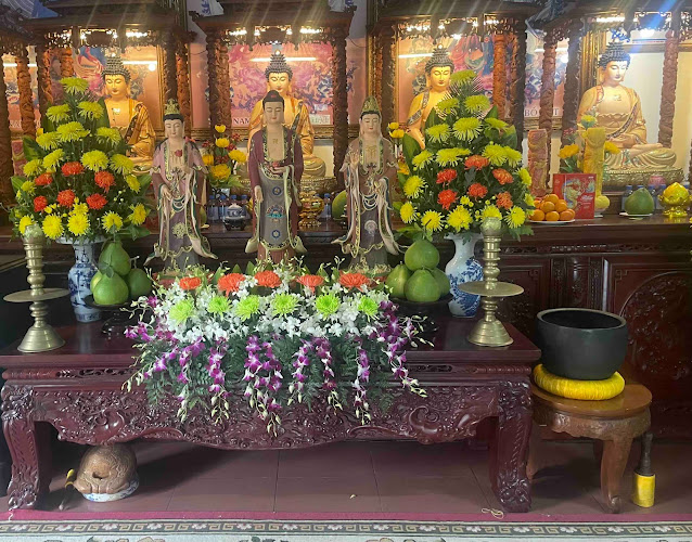 La pagode se signale de loin grâce à une statue de Bouddha haute de 17 m, construite en 1972.